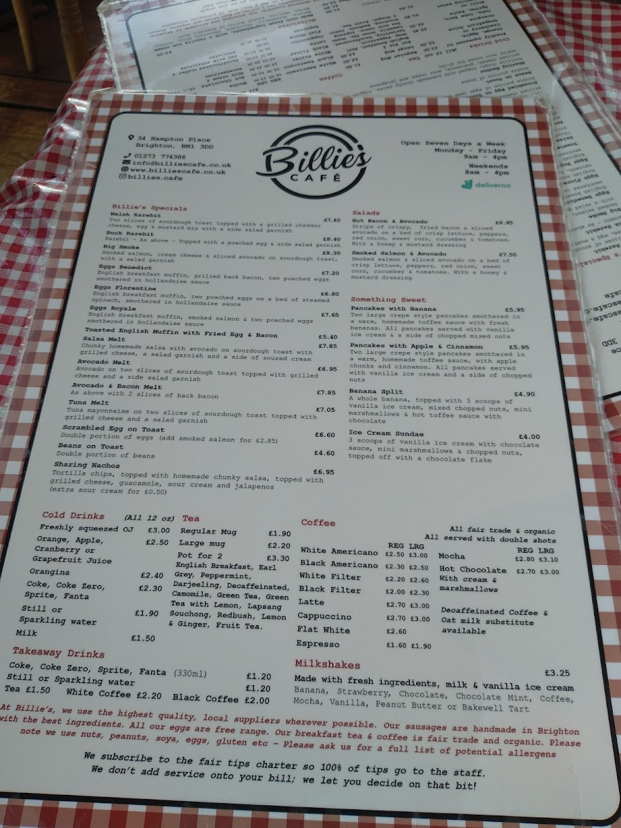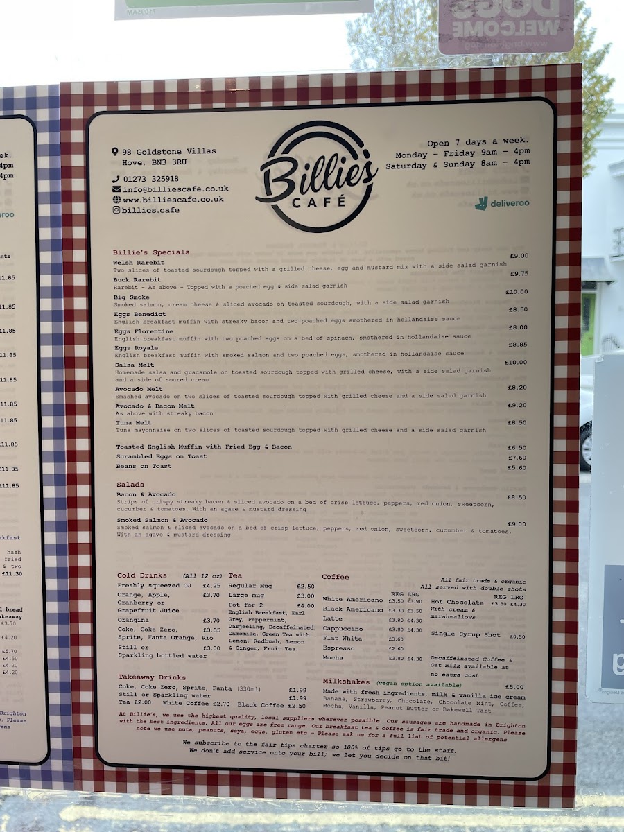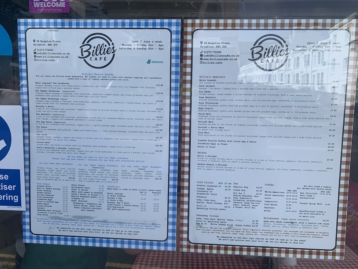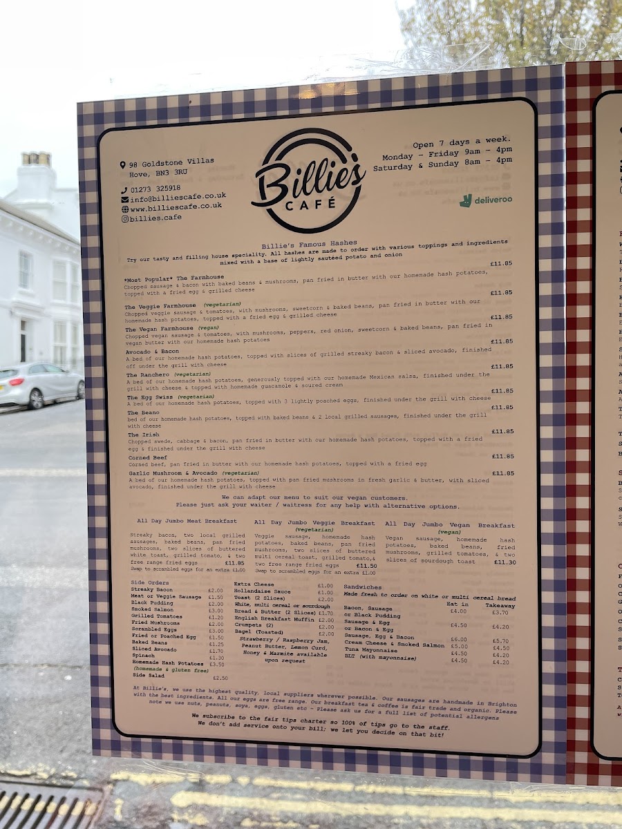 Billie's Menu