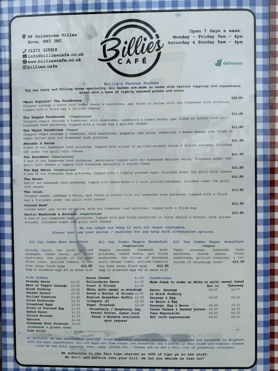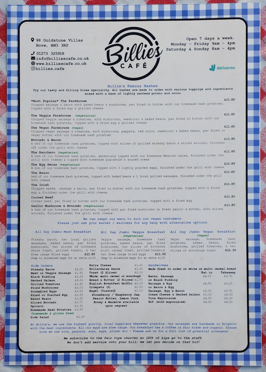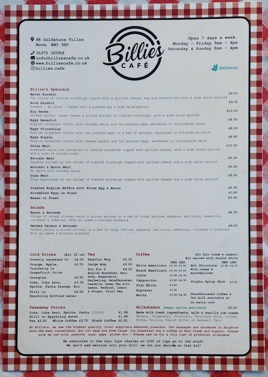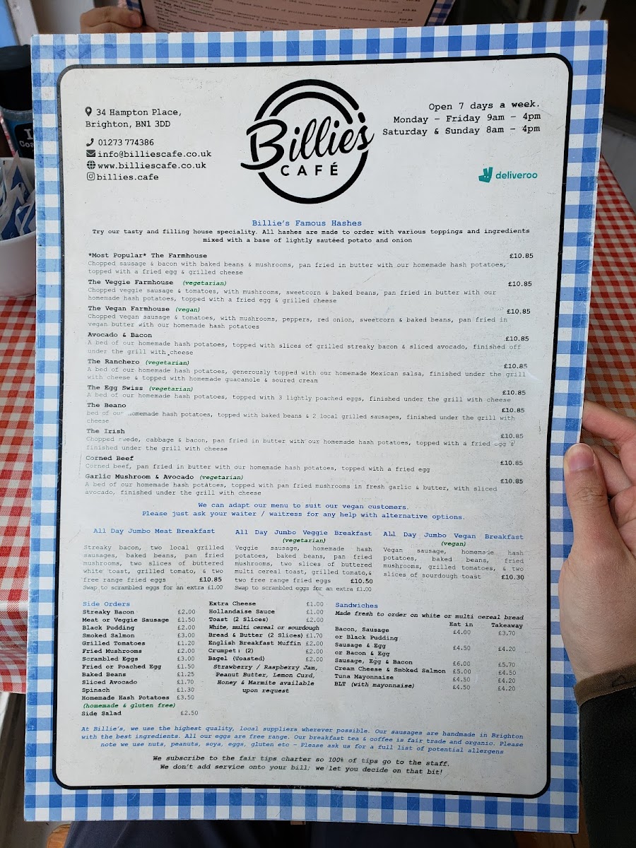 Billie's Menu