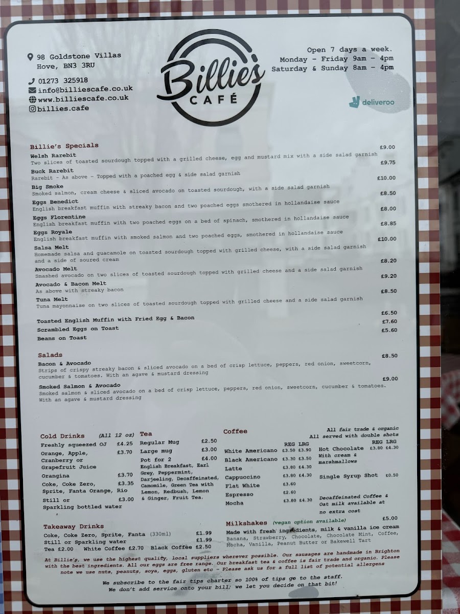 Billie's offers a thoughtfully curated café menu that feels both familiar and satisfying, perfectly suited for breakfast and brunch moments. The selection centers on classic, comforting dishes alongside simple, well-crafted drinks—ideal for starting the day or enjoying a leisurely mid-morning break.